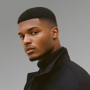 A man wearing a black turtle neck sweater.