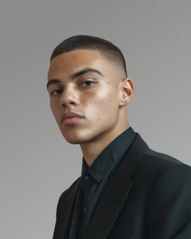 A man with a black shirt and a black jacket.
